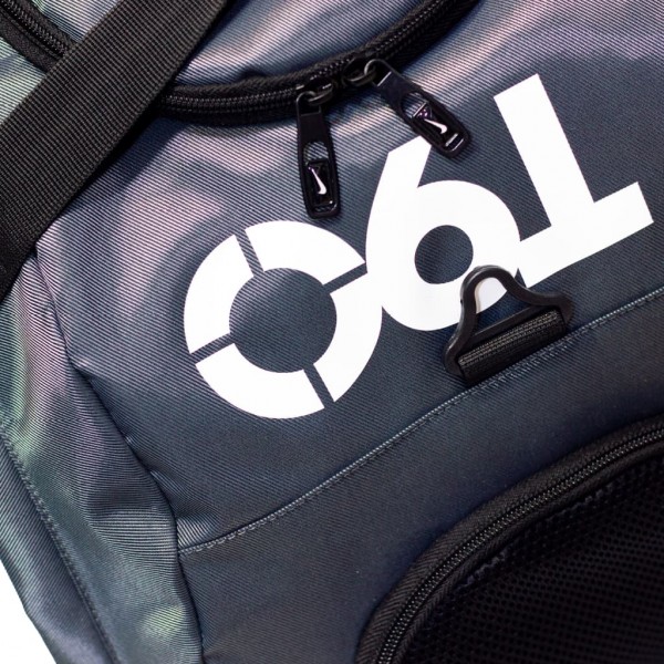 بهتر است در این جیبها وسایلی که باید در دسترس باشند را قرار داد تا بتوان بهسادگی آن را از ساک بیرون آورد. یک محفظهی مخصوص برای نگهداری کفش در داخل ساک طراحی شده است. بعد از یک تمرین ورزشی، میتوانید کفشهای خود را در این محفظه قرار دهید تا کفش به دیگر وسایل شما برخورد نکند. حمل این ساک به دو صورت میسر است: یکی استفاده از بند رو دوشی و دیگری استفاده از دو بندی که به کنارهها دوخته شدهاند. بند رو دوشی قابلیت تغییر اندازه دارد تا براساس قد خود بتوانید اندازهی مناسب را تنظیم کنید. دو بند دیگر را میتوان علاوهبر دردستگرفتن، به روی دوش نیز انداخت تا فشار کمتری از حمل کیف به شما وارد شود. اما مهمترین قابلیت ساک ورزشی نایکی مدل T90 قابلیت کوله شوندگی آن است که وجه تمایزی بزرگ در مقابل سلیر مدل ها میباشد.ساک ورزشی نایکی مدل T90 یک ساک بزرگ با گنجایش 50 لیتر محصولی بسیار مناسب ورزشی است که میتوان به صورت یک کولهپشتی نیز آن را حمل کرد.