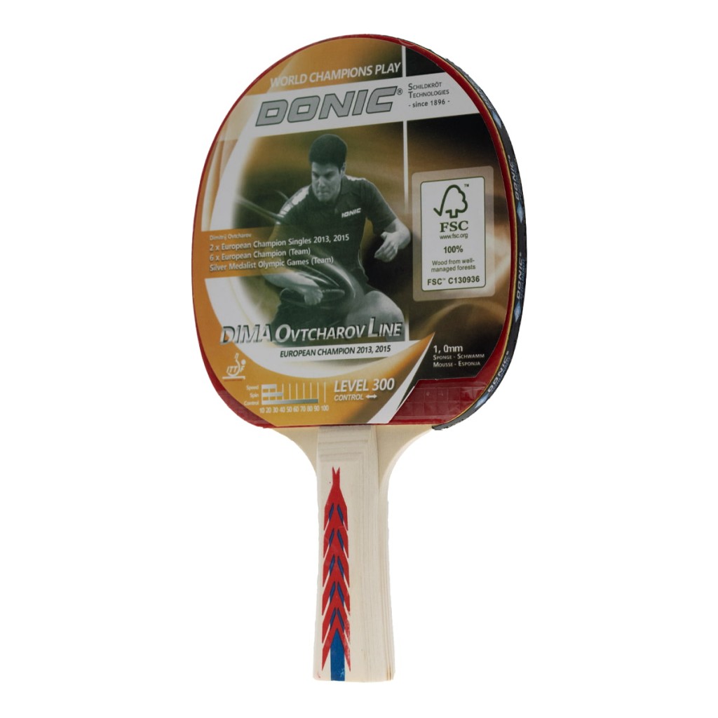 راکت پینگ پنگ دونیک مدل DONIC DIMA Ovtcharov Line OLK-300 | لول 300 برای بازیکنان مبتدی, نیمه حرفه ای و بدون تجربه ی خاصی از بازی پینگ پنگ مناسب می باشد. این مدل برای استفاده در اوقات فراغت و برای بازی در مدارس، انتخاب خوبی است.